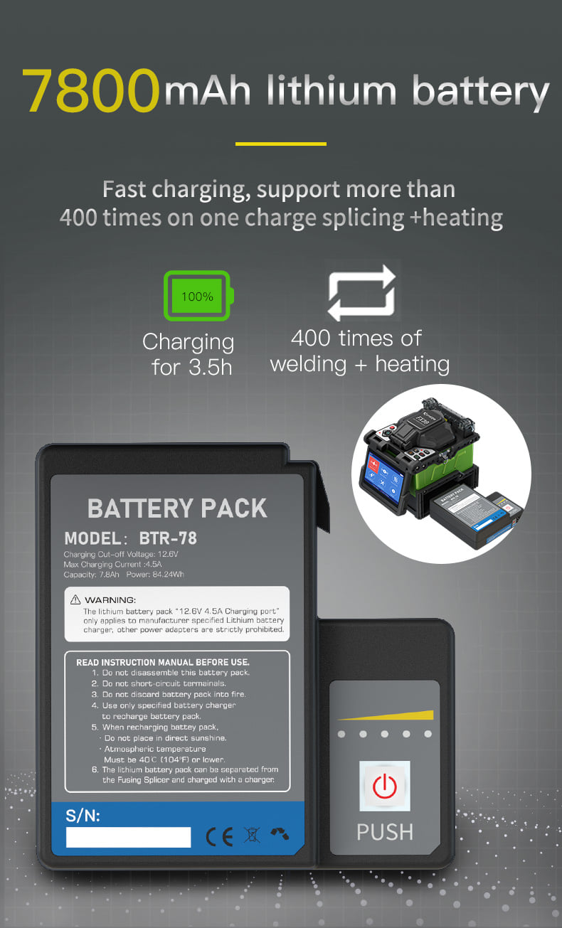 - 7800mAh battery, 400 cycles of splicing and heating