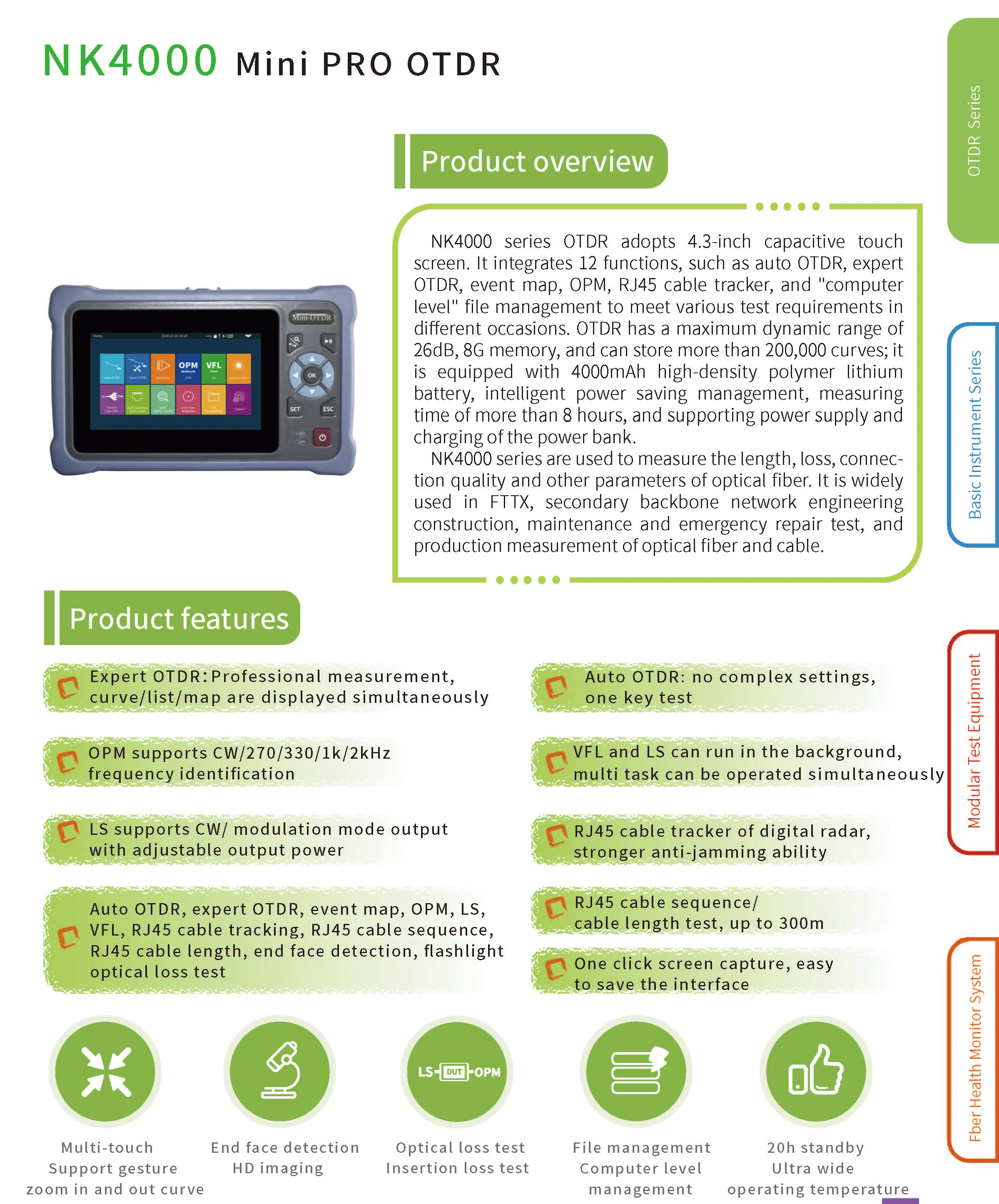 Product Name: NK4000 Mini OTDR with 1310/1550nm 60KM Range Handheld Event Map FC SC Adapter